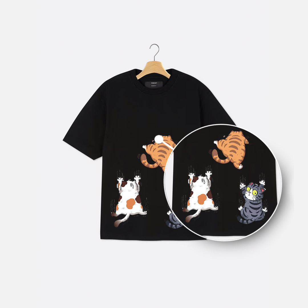 Three Cats Climbing Wall Graphic Tee T-Shirt
